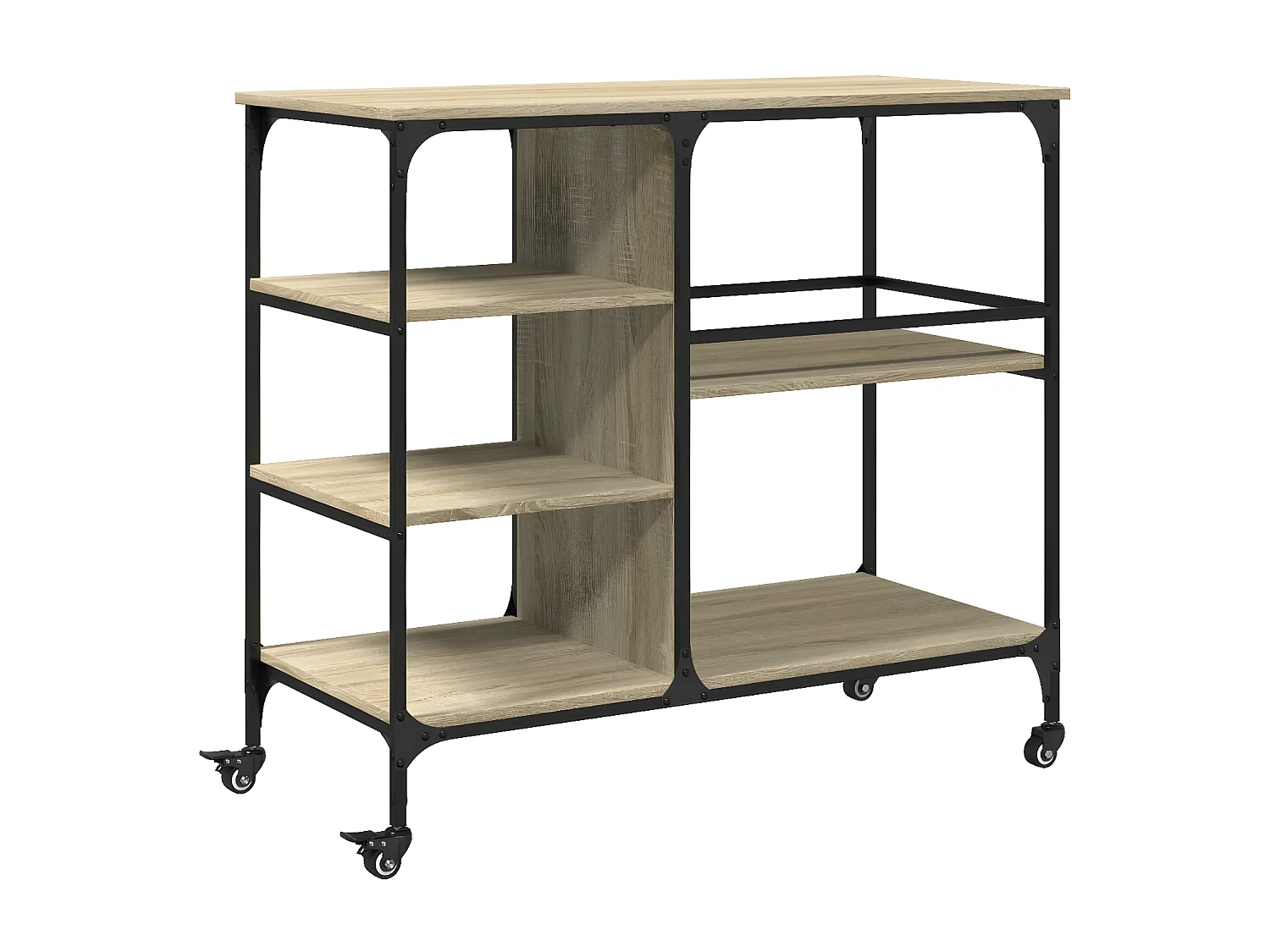 L'armoire est fabriquée en bois d'ingénierie de qualité, qui assure sa robustesse et sa durabilité. Conçue avec 5 compartiments spacieux et 2 portes, la bibliothèque offre un grand espace de rangement pour ranger et tenir à portée de main vos magazines, livres, DVD, appareils multimédias et autres objets de décoration. Comme une étagère polyvalente, le porte-livres est également une solution de rangement parfaite pour tout autre espace de vie. De plus, ce support de livre est facile à nettoyer avec un chiffon humide.